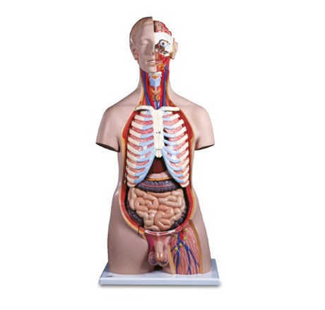 Torso umano a grandezza naturale, smontabile in 38 parti. Tutti i particolari, i colori e i forami sono realizzati in plastica di elevata qualità e sono riprodotti fedelmente. Il modello comprende gli organi genitali maschili e gli organi genitali femminili. Altezza: 85 cm. Garanzia: 12 mesi on-center.