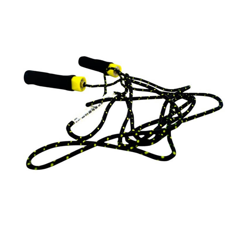 Corda Zeus per salto con manici in schiuma e corda in 100% propilene. Colore: nero e giallo.
