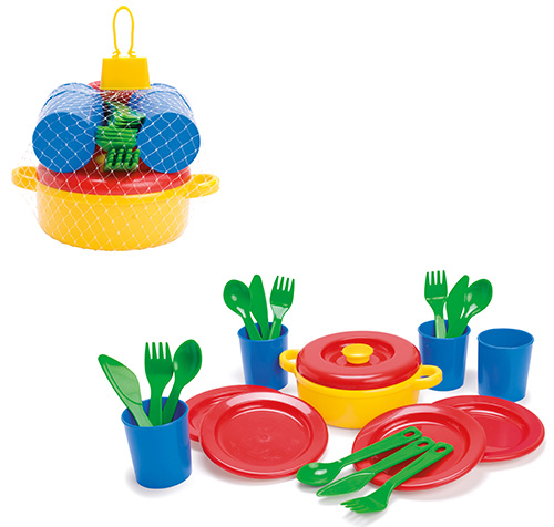 Prepariamo la tavola è il set di stoviglie con cui preparare la tavola per 4 persone. Nel momento in cui i bambini svolgono l'attività di gioco simbolico, un elemento fisicamente presente viene utilizzato per rappresentare qualcosa che nella realtà concreta è assente. Pertanto, quando i bambini giocano con le stoviglie, il cibo viene evocato attraverso la mente. Ogni chef inizia così: qualche piatto e un sacco di ispirazioni per piatti prelibati! - Eco Toys - Lavabile in lavastoviglie - Stimola l'immaginazione e lo sviluppo cognitivo - Valore educativo: accrescere le abilità lessicali, sociali, creative e motorie - Ideale per il Nido e la Scuola dell'Infanzia - Adatto dai 24 mesi.