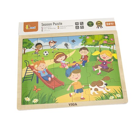 Puzzle della primavera: ogni stagione ha la sua particolarità, si può andare in un posto diverso e si possono fare differenti attività. Questo puzzle, realizzato in legno, illustra la primavera rappresentando i giochi che si possono fare all'aria aperta, insieme agli amici e agli animali. Cosa c'è di più bello che andare a giocare al parco quando fuori è primavera? Sul fondo della tavola del puzzle è riportato lo stesso disegno a colori, per aiutare i bambini a trovare il giusto alloggiamento per ogni singola tessera. - Realizzato in legno certificato FSC - Include: 1 tavola modello a colori con 24 tessere - Stimola la coordinazione oculo manuale, il ragionamento logico e l'immaginazione - Incentiva le capacità linguistiche attraverso attività di Storytelling - Adatto dai 24 mesi